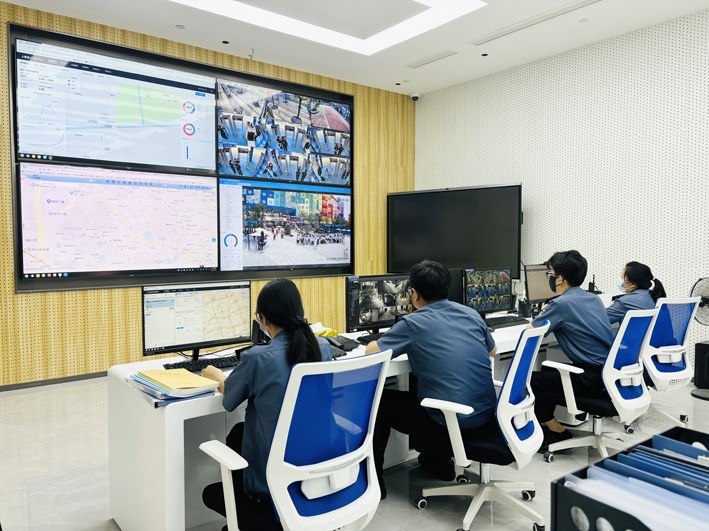 ② 在上海乐高乐园综合警务站,民警通过指挥大屏时刻监测各点位人流量情况