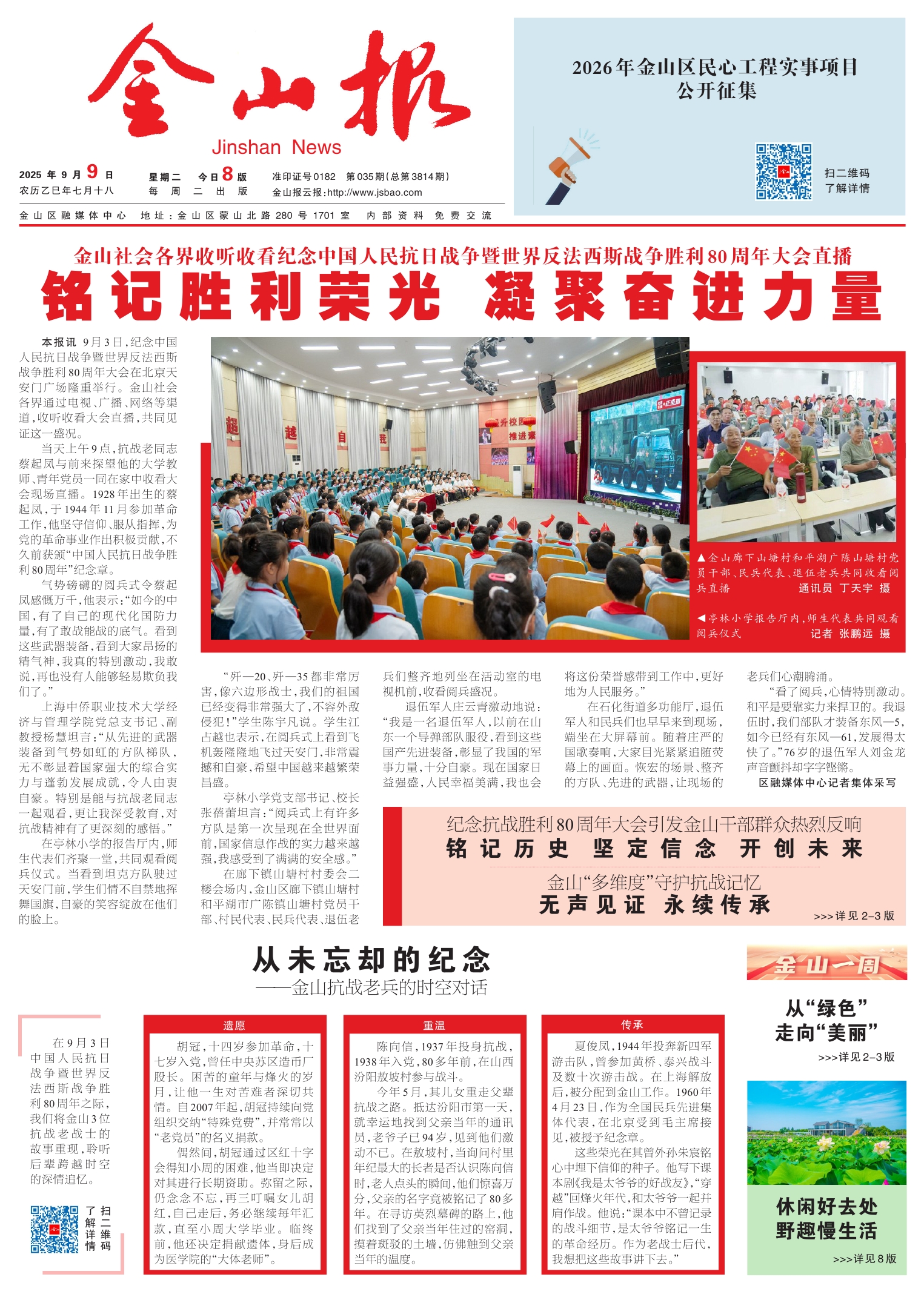 金山社会各界收听收看纪念中国人民抗日战争暨世界反法西斯战争胜利80周年大会直播