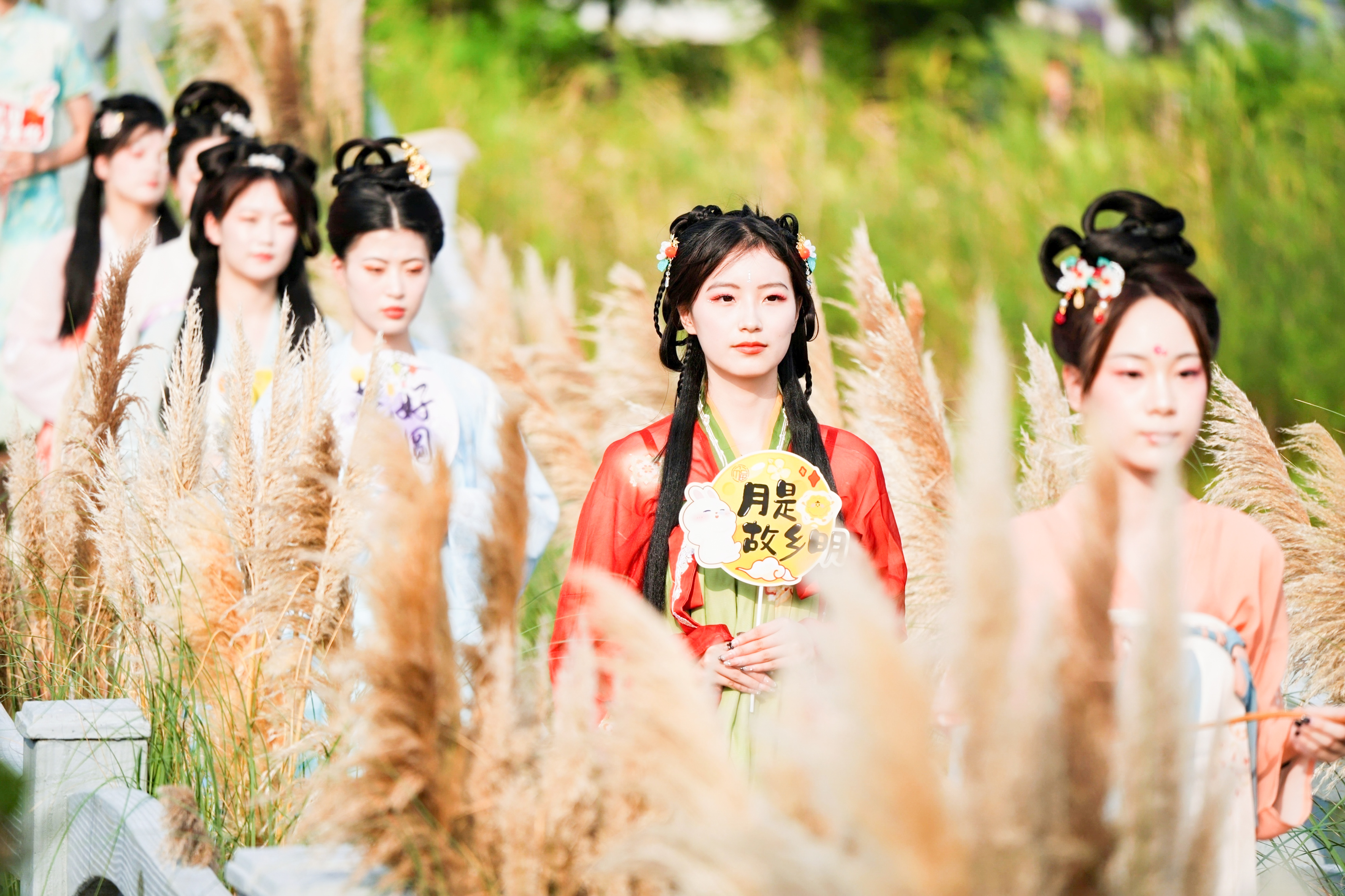 作为沪郊小有名气的“书法之乡”,漕泾自古崇文厚德,书法底蕴深厚,书法教育更贯穿于当地各大学校。走秀现场,老师带领学生在T台旁挥毫泼墨,墨香与湿地的清新气息交织相融。大学生与模特身着太极礼服、传统汉服等民族服饰登场,一举一动间尽显中华传统文化的大气与典雅。“没想到乡村里能有这么高水平的艺术活动,既能看到本土文化,又能感受到国潮魅力,太震撼了!”一名游客激动地表示,此次来漕泾,不仅饱了口福,更饱了眼福,收获满满,以后会经常带家人来游玩。