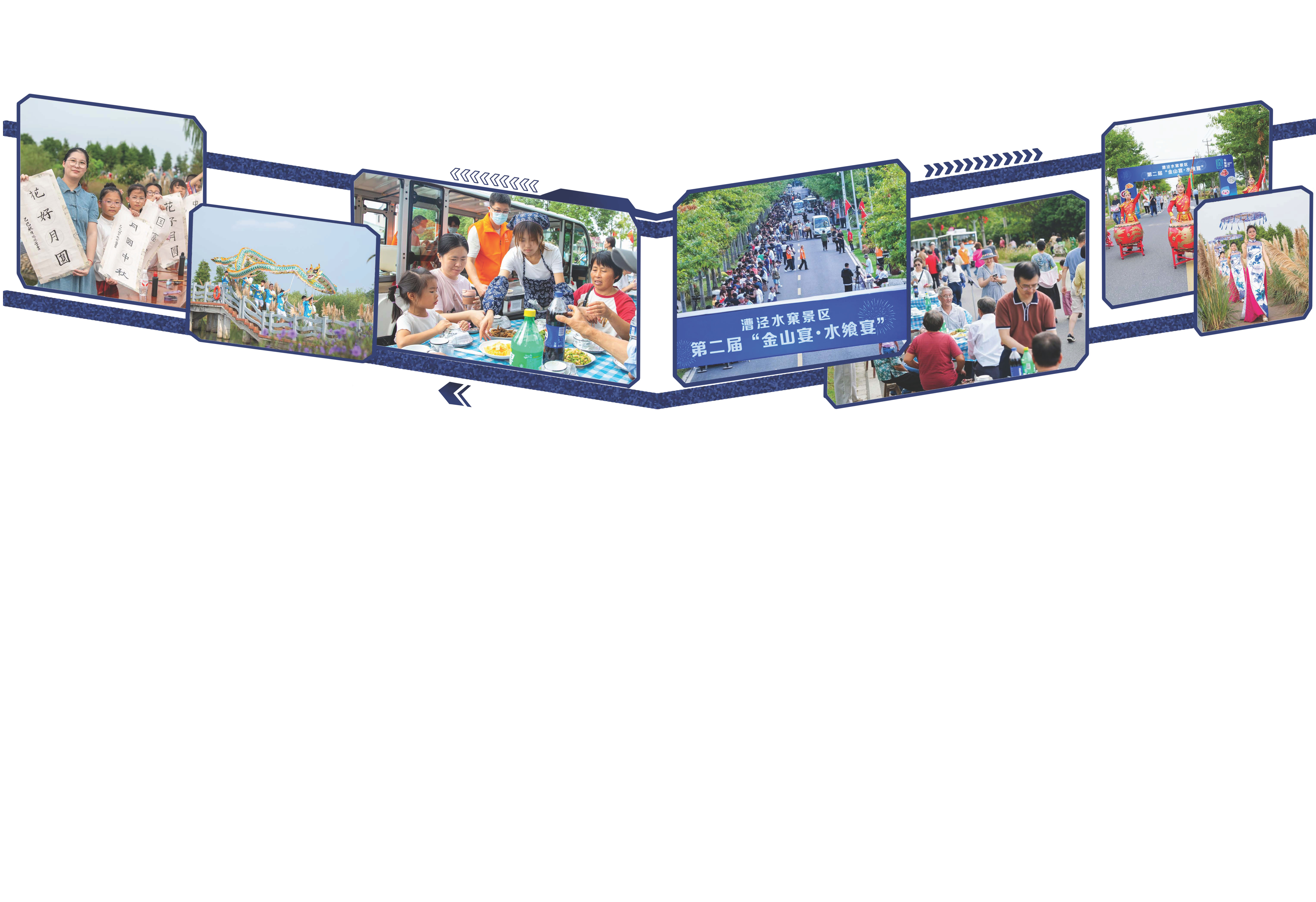漕泾镇作为上海首个“两山”基地,拥有着良好的自然生态基底。今年9月,漕泾水窠景区成功获评国家4A级旅游景区,景区所在的水库村也是上海市首批乡村振兴示范村,因水网密布、河宽漾大,旧时有“水窠里”之称,水质常年保持在Ⅲ类,盛产新鲜河鲜,养河鲜、烧河鲜、吃河鲜的传统由来已久。“金山宴·水飨宴”是由水库村的传统——千人长桌宴演化而来的,通过河鲜为主的特色餐饮体验,丰富了游客的沉浸式体验,感受农村庆祝节日的热闹习俗。