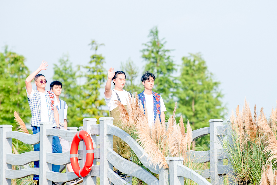 其实早在当日下午,“同心共圆 秋绘华章”庆国庆湿地走秀,在景区的湿地公园内精彩上演。漕泾有着6400年前的冈身遗址,又有着沪派江南的优美水乡风貌,因此也有了“千年拾贝处,东方羊角村”的美誉。在前两天WDCC2025世界设计之都大会上,漕泾镇被评为“乡村美学小镇典型案例”,以“乡村美学”为核心,通过生态赋能与美学设计激活文旅产业,形成生态、美学与文旅的融合模式。这片湿地公园就是由昔日的鱼虾塘改建而成,总面积达106.5亩,凭借芦苇、水杉、栈道、亭台等元素勾勒出多样区块迷宫,本就是游客乘船、步行或骑行打卡的热门地,如今更化身一座天然“水上T台”,让走秀与自然景致相映成趣。